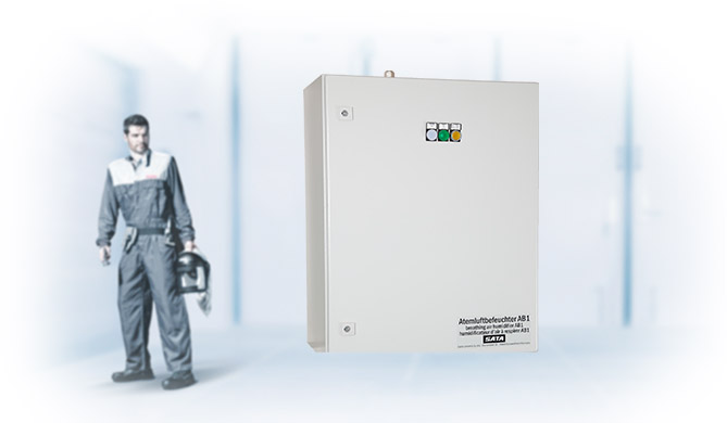 潔凈的壓縮空氣是達到理想噴涂效果的重要條件,但如果要為全面式供氣面罩提供可以呼吸的健康空氣,就必須達到更高的標準。 為了滿(mǎn)足同時(shí)向多名噴涂技師提供安全、舒適的呼吸空氣,薩塔公司研發(fā)了SATA AB1中央呼吸保護系統。 SATA AB1中央呼吸保護系統包括兩大基本功能: 第一大功能是精細過(guò)濾濾芯和活性碳過(guò)濾器濾芯,以及壓力調節器??梢詫嚎s空氣過(guò)濾為能夠呼吸的潔凈空氣,并可以精確調節呼吸空氣的壓力。 第二部分是空氣加熱器和空氣加濕器,可以將呼吸空氣逐漸加熱至適宜的溫度和濕度。