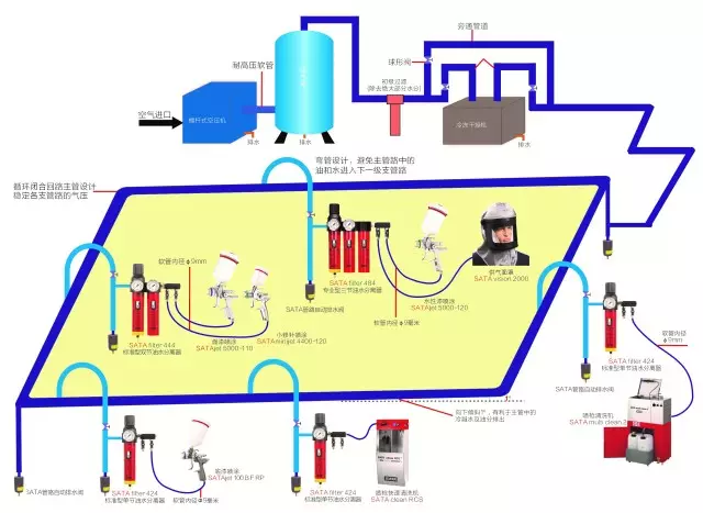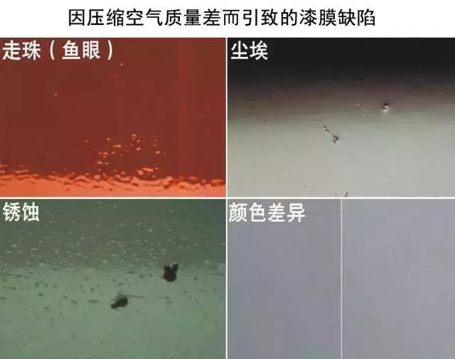其中影響空氣噴涂質(zhì)量的最關(guān)鍵因素是壓縮空氣的潔凈度,然而,壓縮空氣的潔凈度也是最容易被忽視的一個(gè)環(huán)節。壓縮空氣用于驅動(dòng)工具或設備,噴涂時(shí)對油漆起到傳輸和霧化作用,壓縮空氣必須達到充足、穩定、干燥、潔凈的要求。因此,壓縮空氣系統的設備選型、合理規劃、正確安裝和維護就顯得尤為重要。