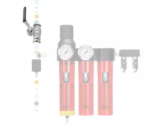 前處理工位壓縮空氣終端過(guò)濾設備的主要作用是去除壓縮空氣中的液態(tài)冷凝物、雜質(zhì)和顆粒物,確保前處理工位氣動(dòng)設備的安全使用,并延長(cháng)各設備的有效使用壽命等。因此,前處理工位壓縮空氣終端油水分離器建議選擇SATA filter 424單節油水分離器。