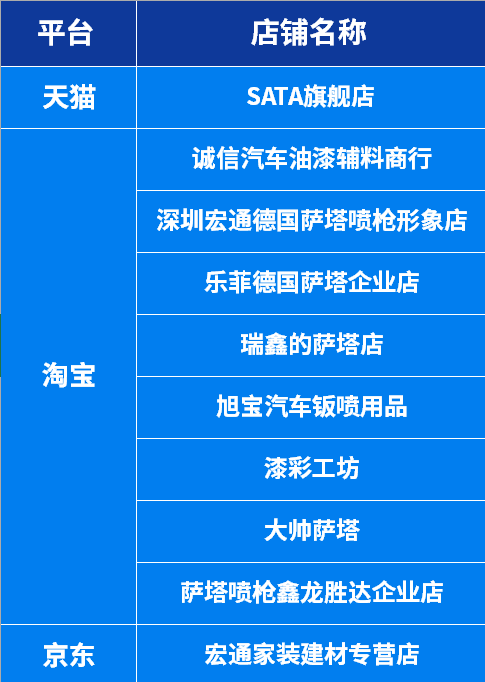 在全國各大、中、小城市都有SATA優(yōu)選經(jīng)銷(xiāo)商,如不清楚可撥打我司市場(chǎng)部熱線(xiàn):0755-8651-0380。