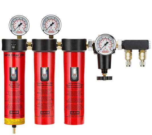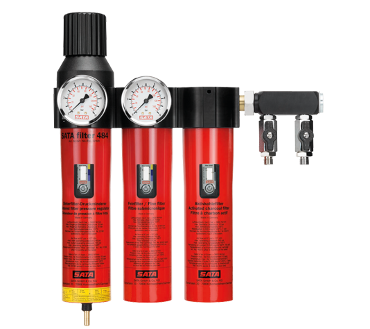 SATA AB1中央呼吸保護系統包括兩大基本功能: 第一大功能是精細過(guò)濾濾芯和活性碳過(guò)濾器濾芯,以及壓力調節器??梢詫嚎s空氣過(guò)濾為能夠呼吸的潔凈空氣,并可以精確調節呼吸空氣的壓力。 第二部分是空氣加熱器和空氣加濕器,可以將呼吸空氣逐漸加熱至適宜的溫度和濕度。